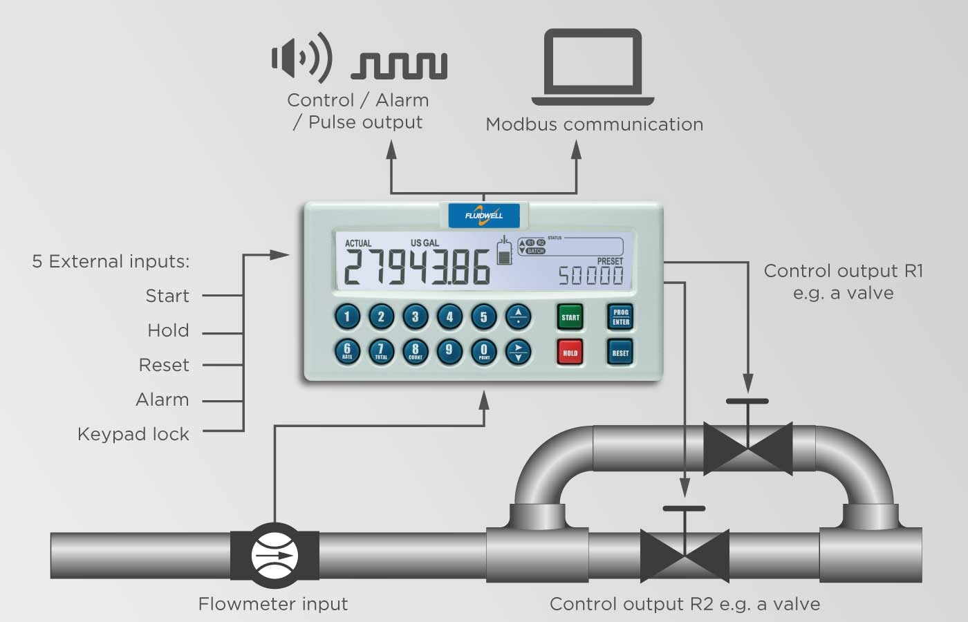 De N410-batchcontroller van Fluidwell onderscheidt zich door zijn gebruiksvriendelijke functies: numeriek toetsenblok, duidelijke programmeer menustructuur, gemakkelijk afleesbaar display en eenvoudige montagebehuizing. Met het numerieke toetsenblok kan de vooraf ingestelde batchhoeveelheid eenvoudig en snel worden gewijzigd. Fluidwell staat voor eenvoud en betrouwbaarheid en is nu beschikbaar in deze klantgerichte en toepassing gestuurde batchcontroller.